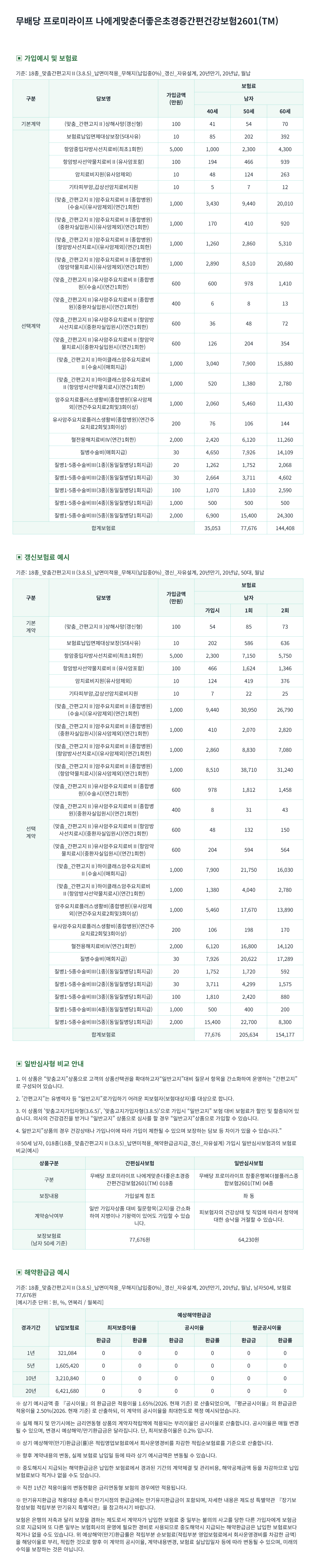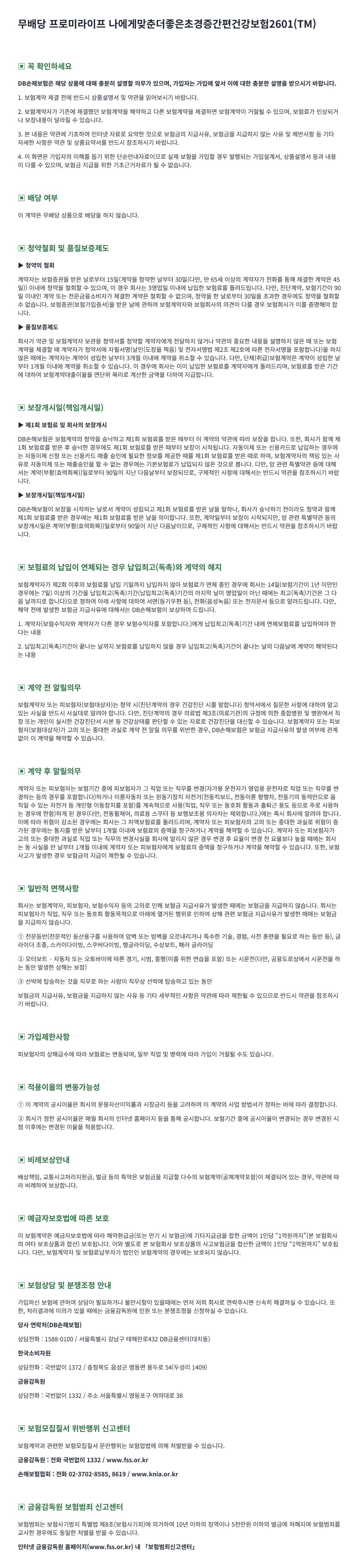 무배당 프로미라이프 나에게맞춘더좋은초경증간편건강보험2601(TM)