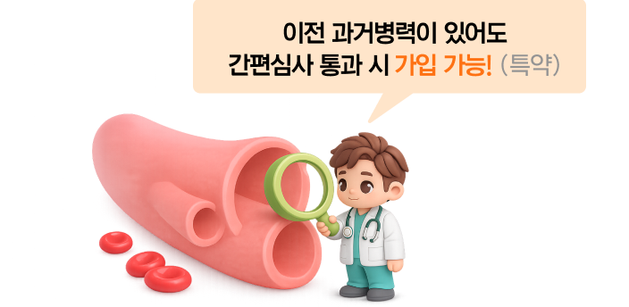 또한, 이전 과거 병력이 있어도 간편심사 통과 시 가입 가능하니 혈관 질환 위험이 높은 분일수록 순환계 보장 확대가 중요합니다! (특약)